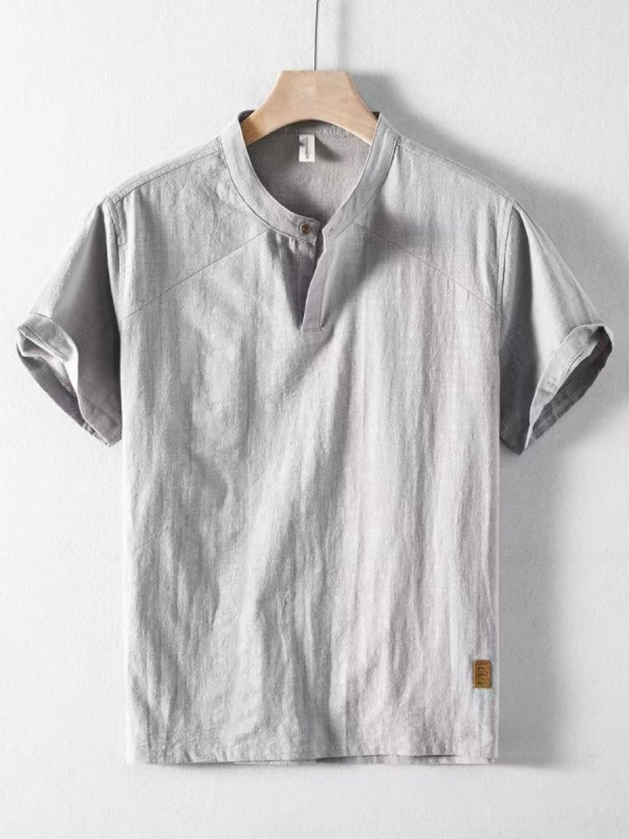 Style: Casual Fit Type:Regular Shirt Length: Regular Sleeves Length: Short sleeve Collar: Stand Collar Material: Cotton Line Material Stretch: No Stretch Pattern Type: Weight: 0.500kg Package: 1 x shirt