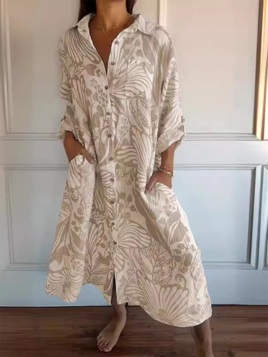 Gender: For Women Style: Casual Fit Type:FIt Shirt Length: Regular Sleeves Length: Long Sleeve Collar: V- Collar Material:70% Cotton+30%Linen Material Stretch: No Stretch Pocket :side poctket Weight: 0.300kg Package:1 x Dress